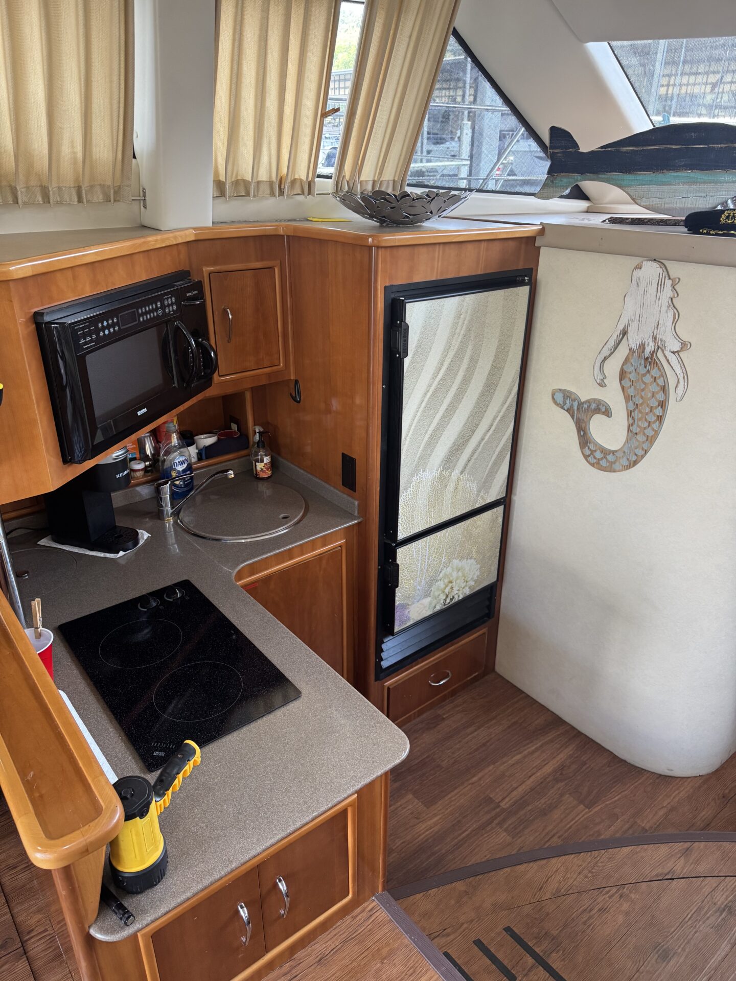 This is a loaded 33 SS with about 850 hours on twin Crusader 6.0l MPI 375hp V-Drives. It is equipped with Gen; Air/Heat; GPS; Radar; VHF Radio; Full Galley; Single Full Size Berth and Private Head with Shower; Spacious Flybridge with Plenty of Guest Seating; Bimini Top with Full Enclosures; SeaDek on Bridge, Bridge Steps, Cockpit & Swim Platform; Dinette; Sofa & Flatscreen TV in Salon with Hardwood Floors.