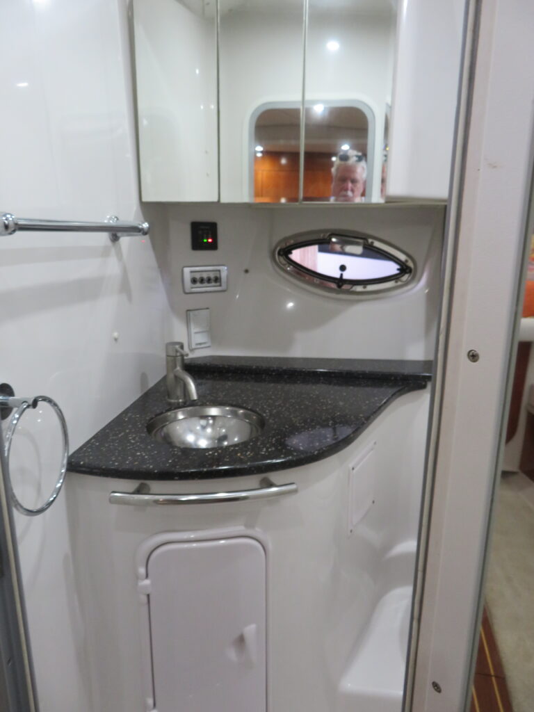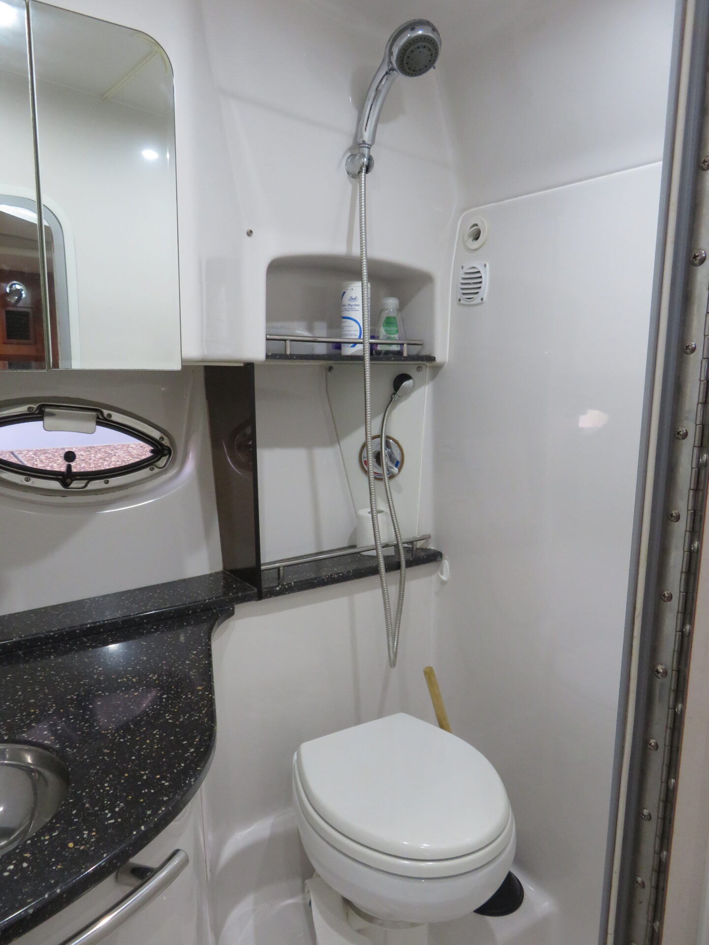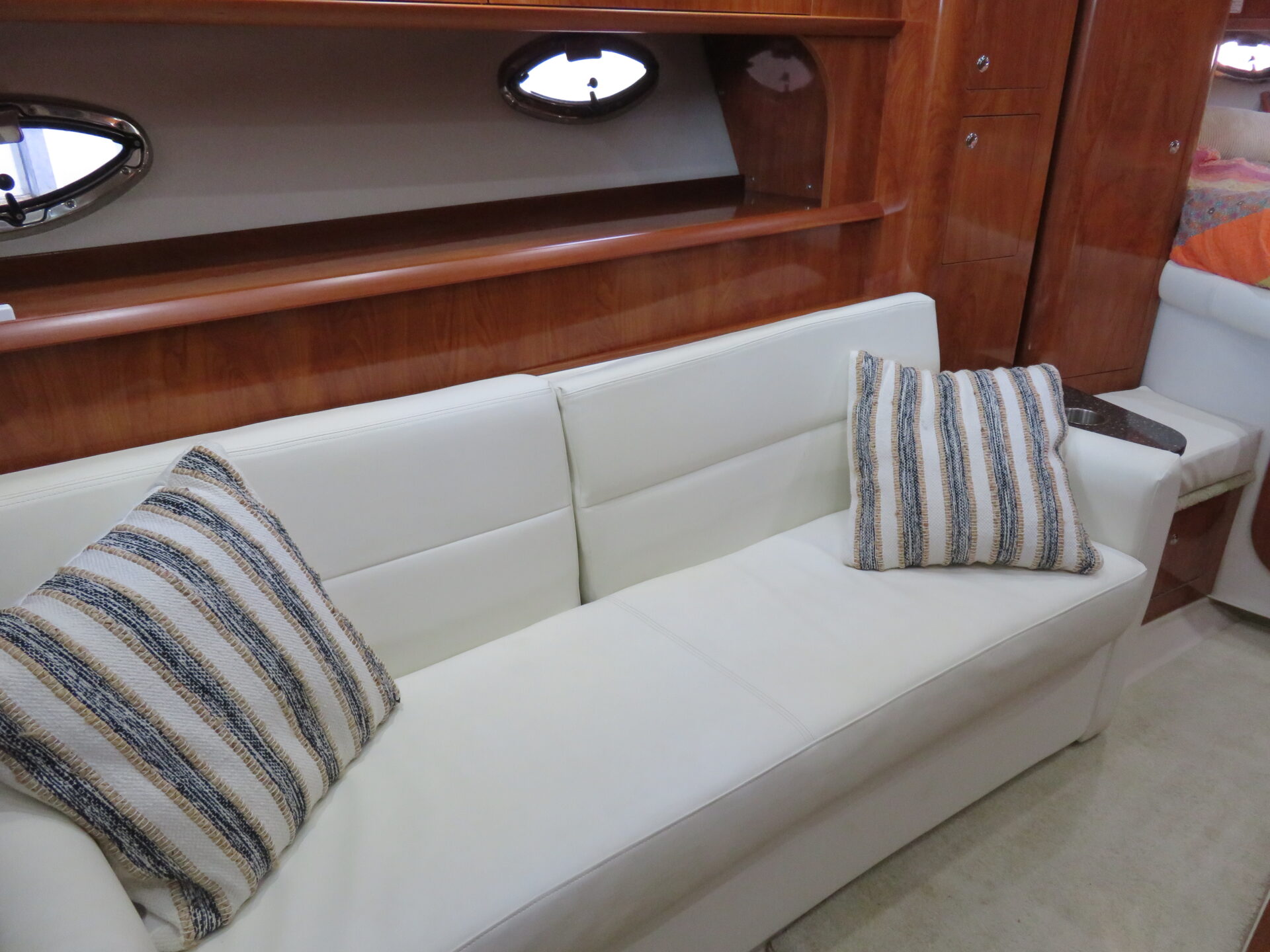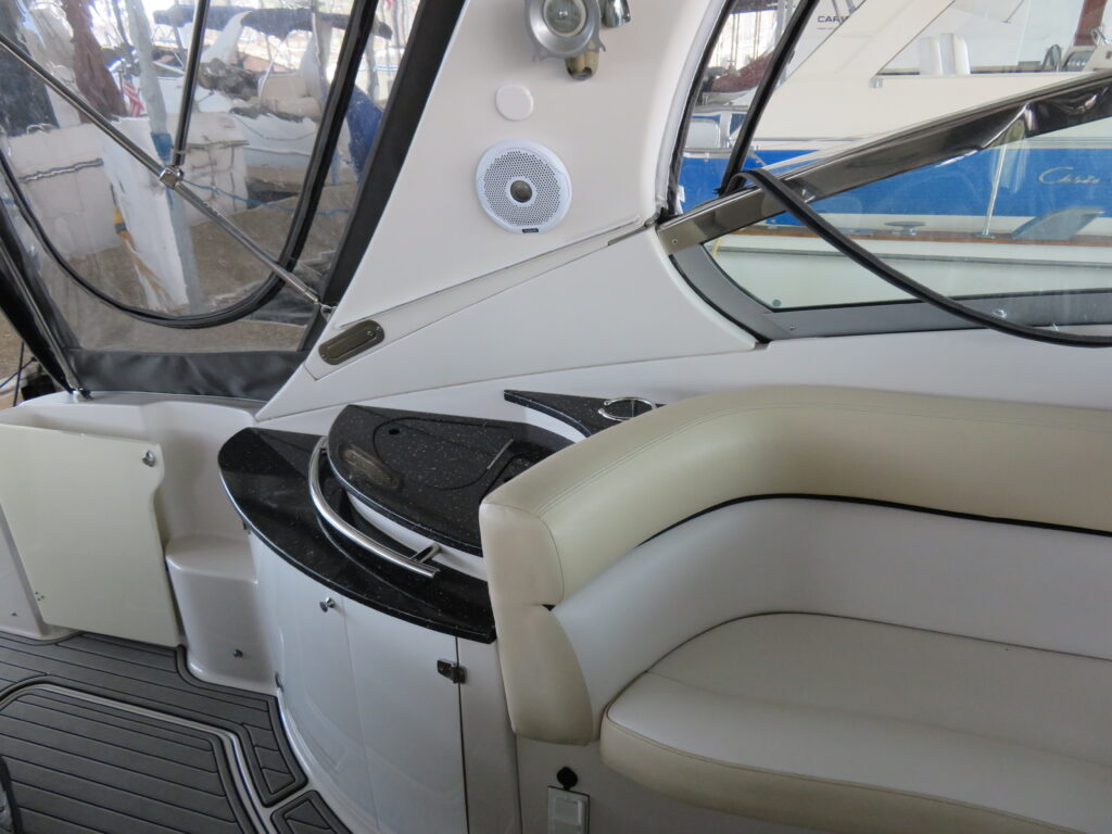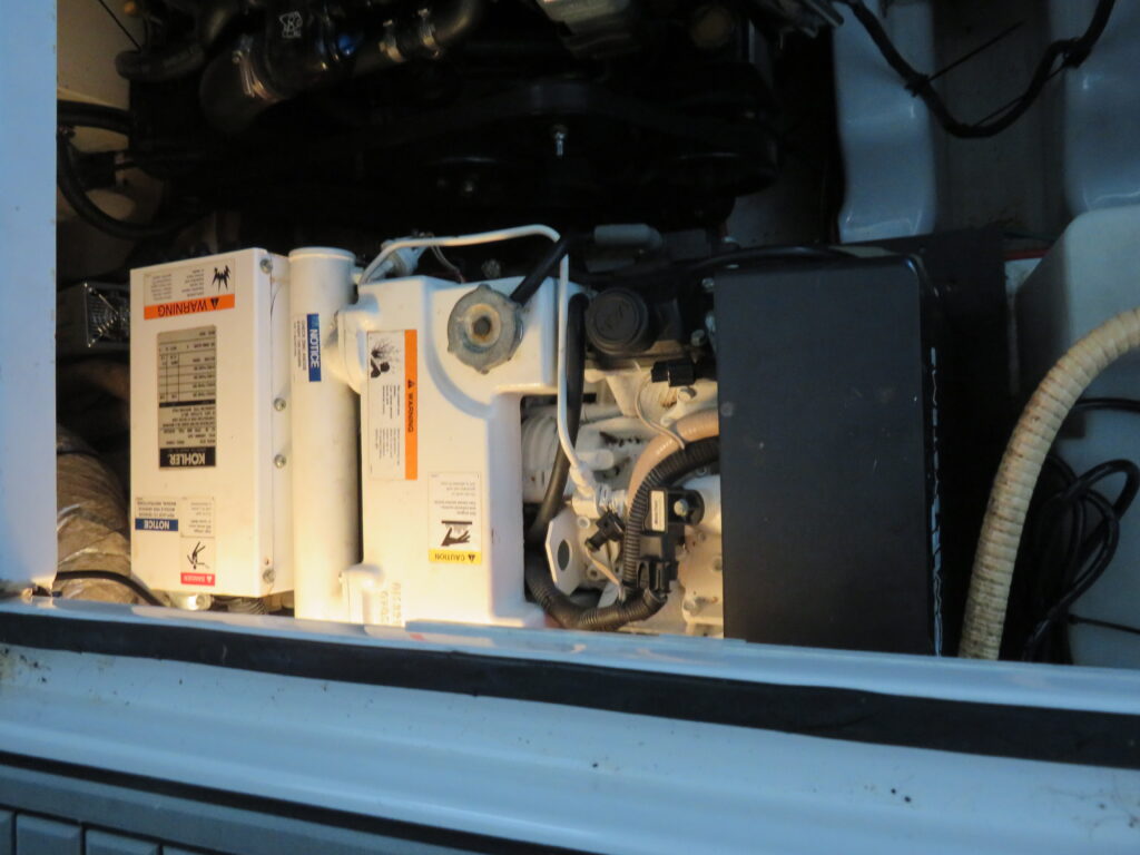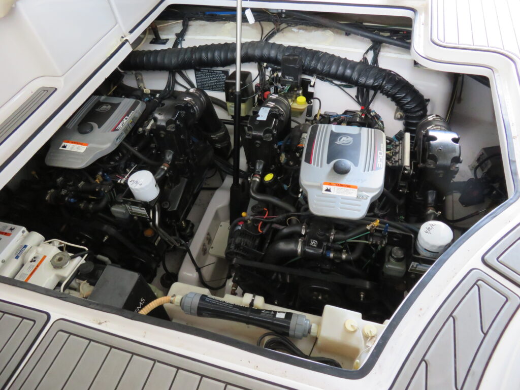 This boat is powered by Mercruiser 350 MAG 300hp Bravo III with under 400 hours both drives were completely rebuilt by our service department 2025 the bottom was also painted then and hull sides buffed and waxed also. Boat has these items installed new in 2025 new canvas, Air Purifier on A/C, Electric isolator, New Mermaid Mattress, Aqua Marine Deck Flooring, Two Bilge heaters, LED lights. Boat has bow thruster, Kohler Generator KW 5.0 with only 160 hours, Raymarine C80 Radar, VHF Radio, Cockpit TV, Spot light this is a very clean and shows new.