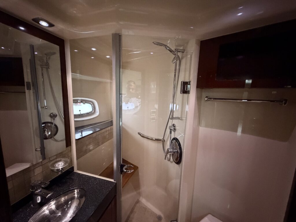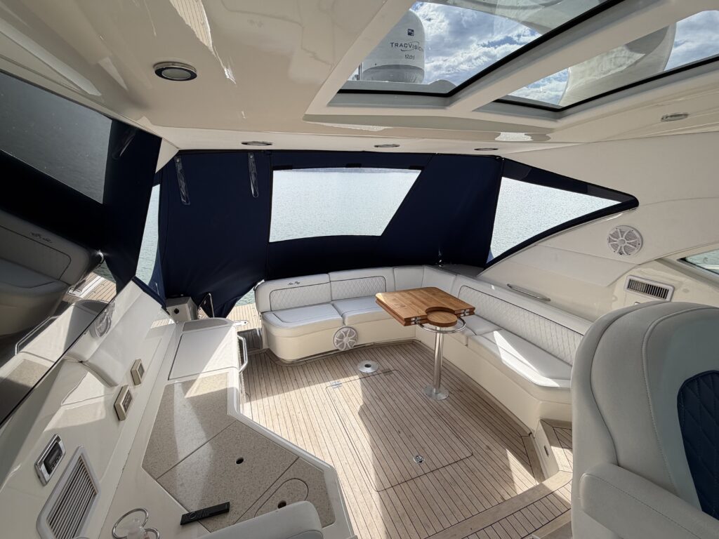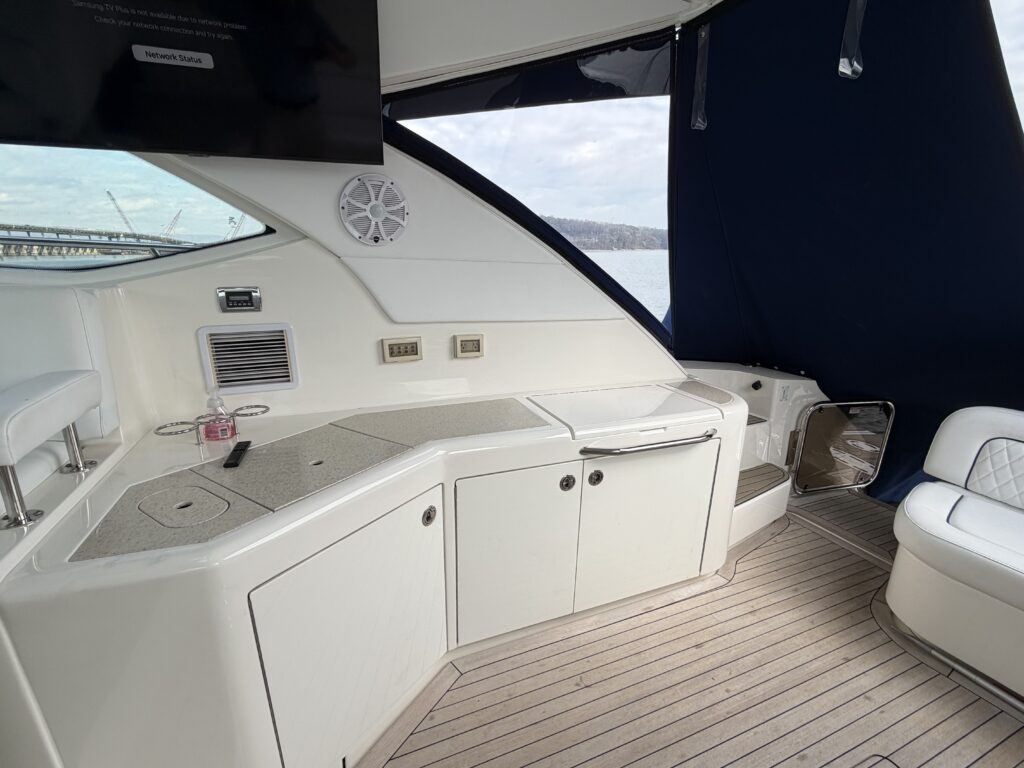 Freshwater & Undercover since delivered new to the original owner. Blue Skyy II has about 1025hrs on twin Cummins QSC 600HO Zeus (600hp) engines and about 2500hrs on the Onan generator. Blue Skyy II is always ready to show, it has hydraulic swim platform with sea deck, cockpit upper and lower teak, cockpit grill, fridge and ice maker, two cockpit AC units, teak cockpit table, cockpit TV, fresh canvas enclosure, fresh cockpit upholstery, twin 16” Raymarine Axium chart plotters, upgraded Fusion stereo with speakers, sub and amp, central vac, and dark cherry interior. Pods were recently serviced and she has just been Buffed and Waxed. Located on the TN river with easy water access to the Gulf or Great Lakes.