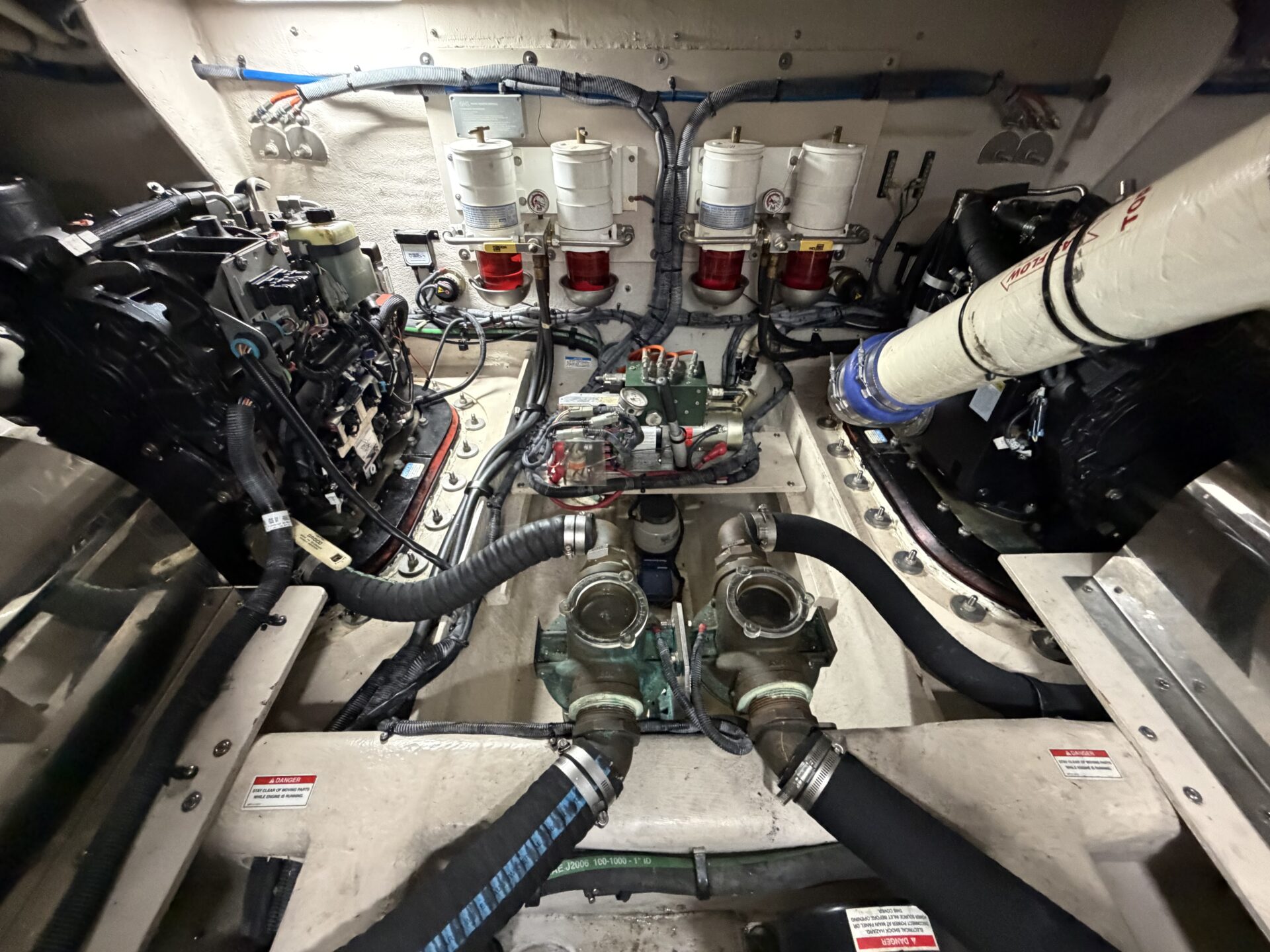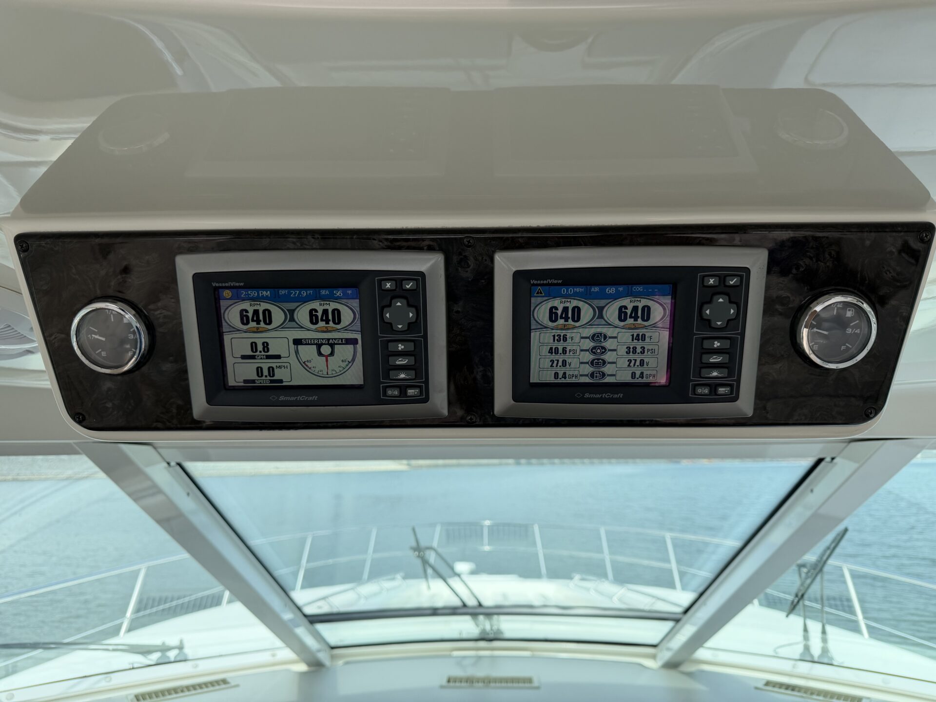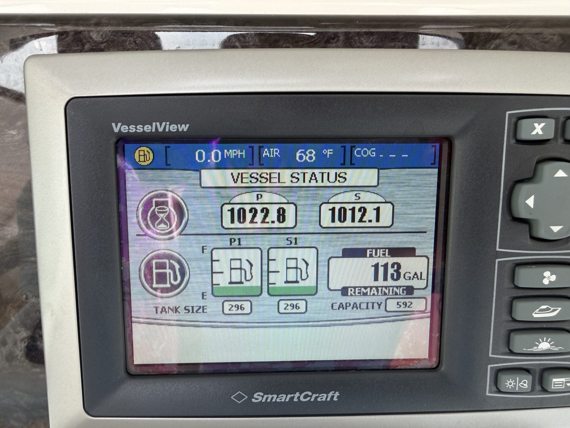 Freshwater & Undercover since delivered new to the original owner. Blue Skyy II has about 1025hrs on twin Cummins QSC 600HO Zeus (600hp) engines and about 2500hrs on the Onan generator. Blue Skyy II is always ready to show, it has hydraulic swim platform with sea deck, cockpit upper and lower teak, cockpit grill, fridge and ice maker, two cockpit AC units, teak cockpit table, cockpit TV, fresh canvas enclosure, fresh cockpit upholstery, twin 16” Raymarine Axium chart plotters, upgraded Fusion stereo with speakers, sub and amp, central vac, and dark cherry interior. Pods were recently serviced and she has just been Buffed and Waxed. Located on the TN river with easy water access to the Gulf or Great Lakes.