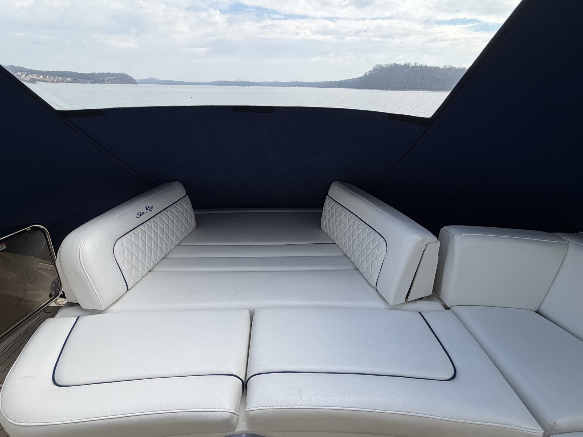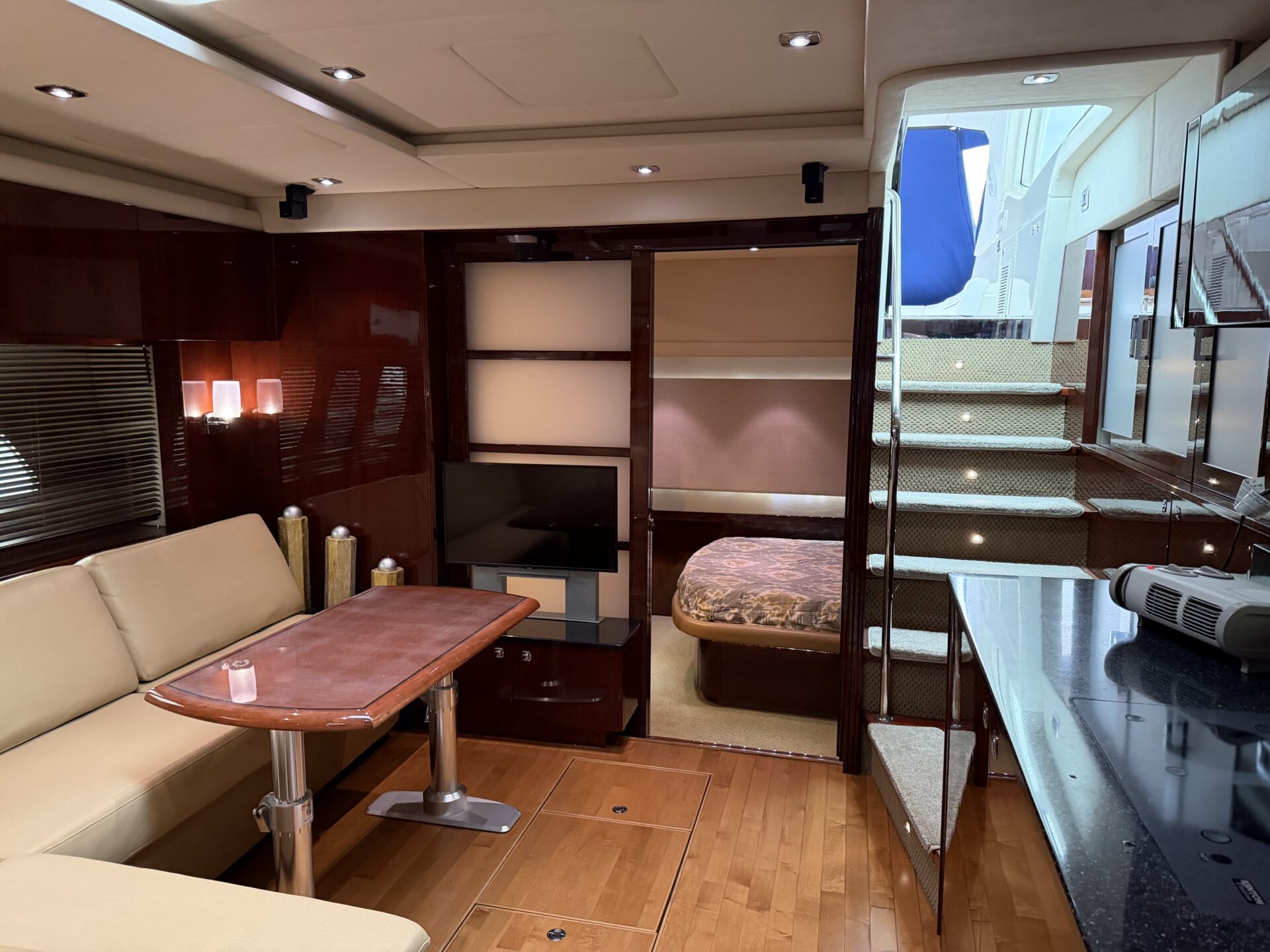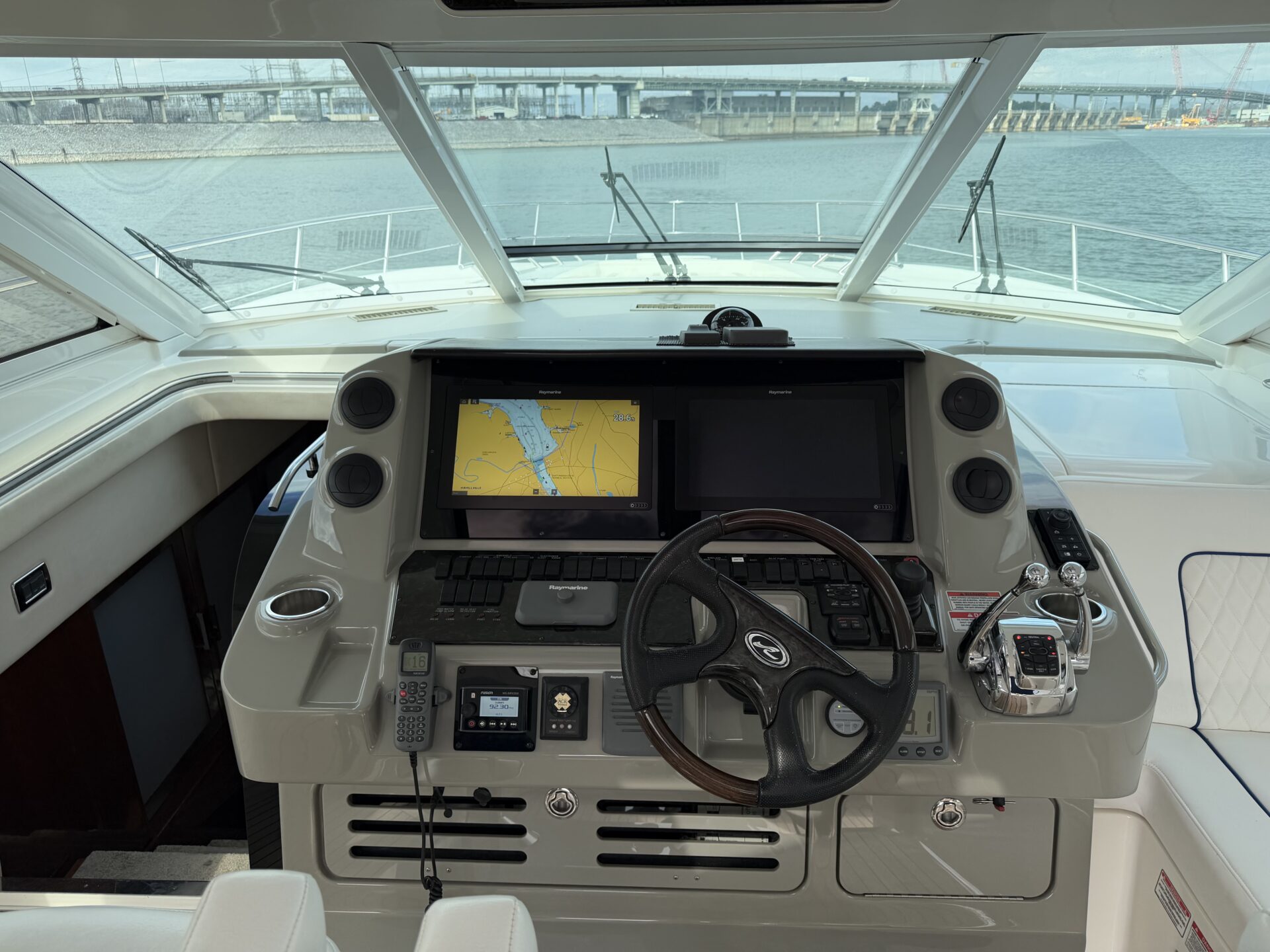 Freshwater & Undercover since delivered new to the original owner. Blue Skyy II has about 1025hrs on twin Cummins QSC 600HO Zeus (600hp) engines and about 2500hrs on the Onan generator. Blue Skyy II is always ready to show, it has hydraulic swim platform with sea deck, cockpit upper and lower teak, cockpit grill, fridge and ice maker, two cockpit AC units, teak cockpit table, cockpit TV, fresh canvas enclosure, fresh cockpit upholstery, twin 16” Raymarine Axium chart plotters, upgraded Fusion stereo with speakers, sub and amp, central vac, and dark cherry interior. Pods were recently serviced and she has just been Buffed and Waxed. Located on the TN river with easy water access to the Gulf or Great Lakes.