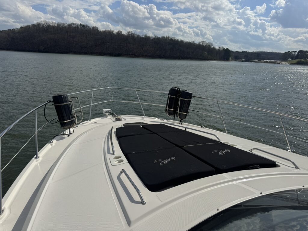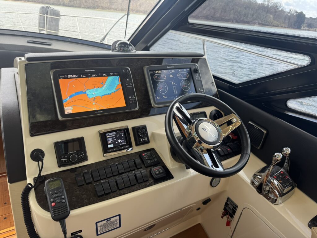 This is an immaculate 470 Sundancer with only 450 hours on QSB 480 Cummins with Zeus Pod Drives. It’s time has been shared between the TN River and Gulf Coast and it is well cared for and lightly used. It has an Aft Deck Enclosure; Teak Decks; Standard Swim Platform; Sky Hook & Auto Pilot; Battery Charger; GPS; Radar; VHF Radio; FLIR Camera System; 3 TV’s; Stereo System; Microwave; Fridge; 4 AC/Heat Units; 6.5KW Diesel Generator; Trim Tabs; 2 Heads with Showers; Windlass; Bilge Heater; Central Vac System; Cockpit Grill; LED Lighting; Cockpit Table; Foredeck Sunpad; DSS TV System; Sea Dek on Extended Swim Platform.