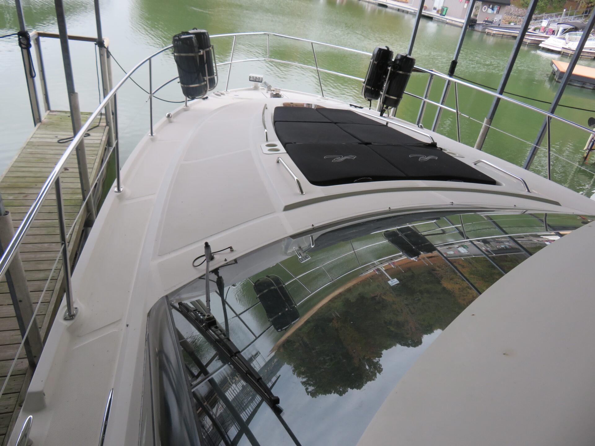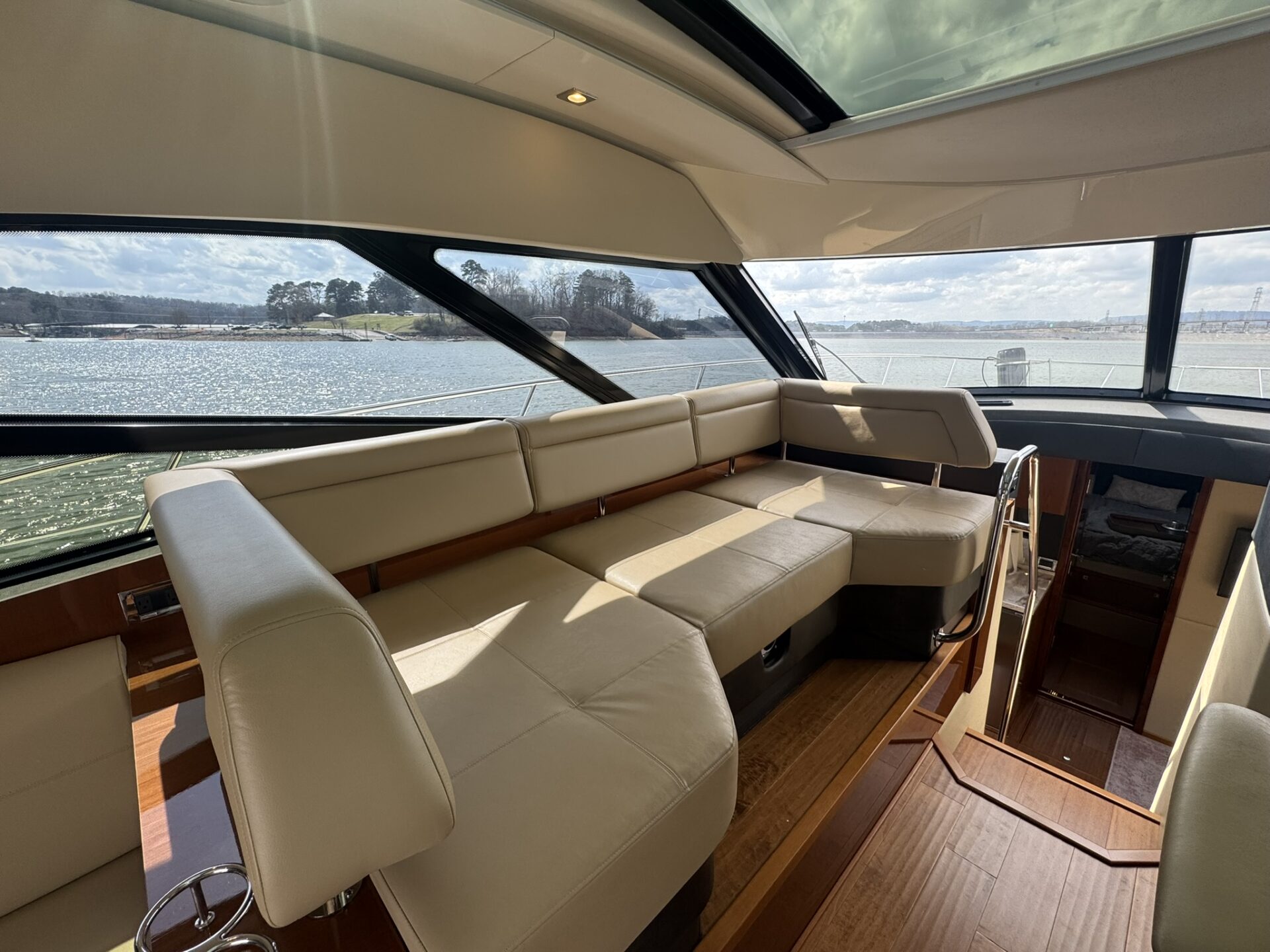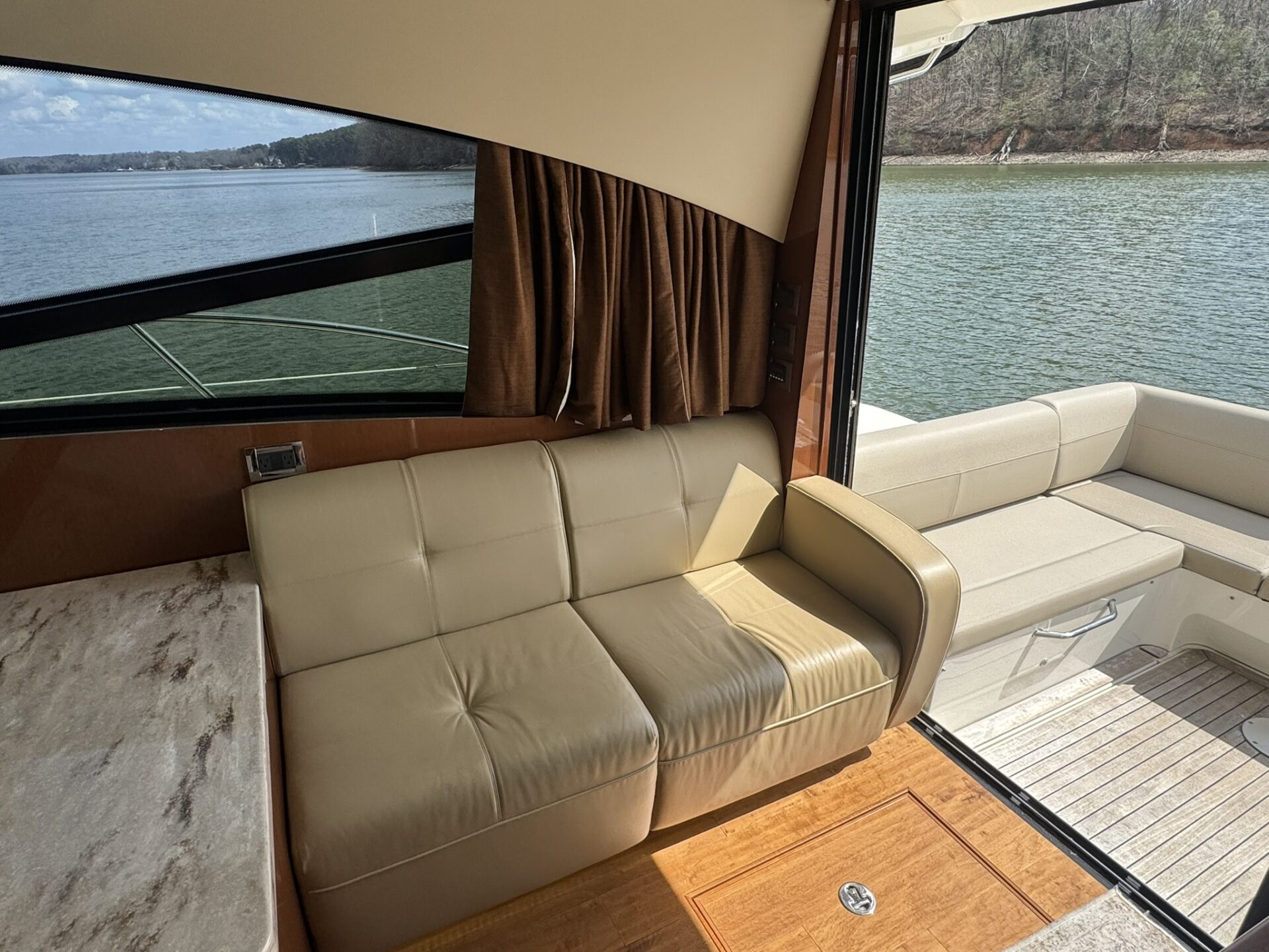This is an immaculate 470 Sundancer with only 450 hours on QSB 480 Cummins with Zeus Pod Drives. It’s time has been shared between the TN River and Gulf Coast and it is well cared for and lightly used. It has an Aft Deck Enclosure; Teak Decks; Standard Swim Platform; Sky Hook & Auto Pilot; Battery Charger; GPS; Radar; VHF Radio; FLIR Camera System; 3 TV’s; Stereo System; Microwave; Fridge; 4 AC/Heat Units; 6.5KW Diesel Generator; Trim Tabs; 2 Heads with Showers; Windlass; Bilge Heater; Central Vac System; Cockpit Grill; LED Lighting; Cockpit Table; Foredeck Sunpad; DSS TV System; Sea Dek on Extended Swim Platform.