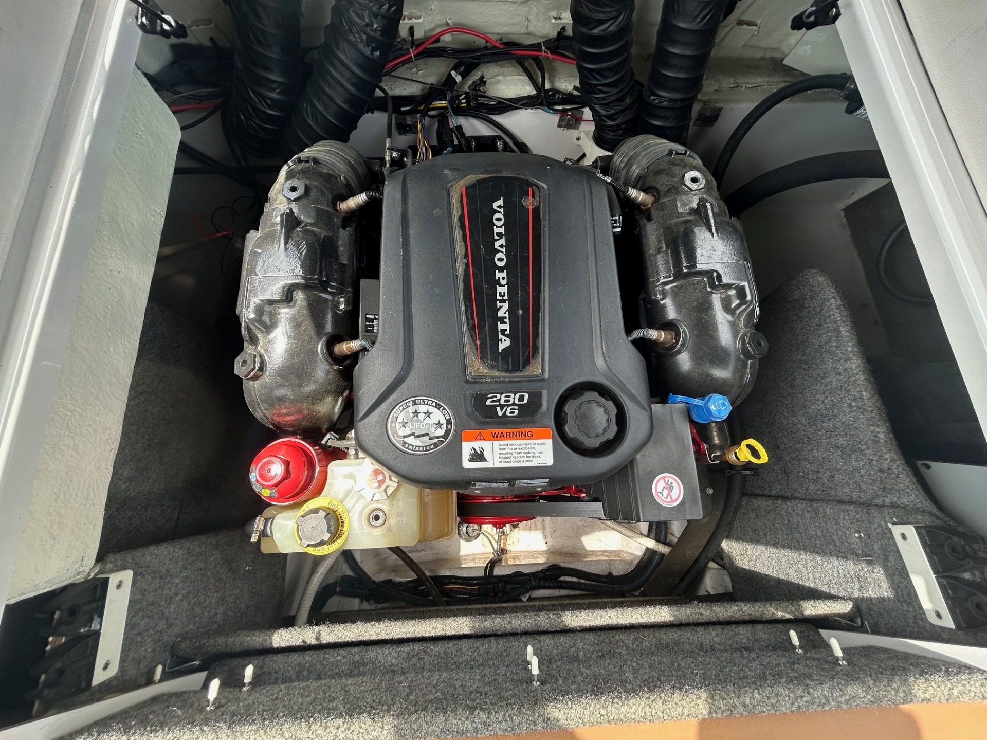 This is a very clean H210 that is powered by a Volvo V-6 280hp; It is equipped with a Depth Finder; Bimini Top with Cockpit Cover with a tandem axle trailer.