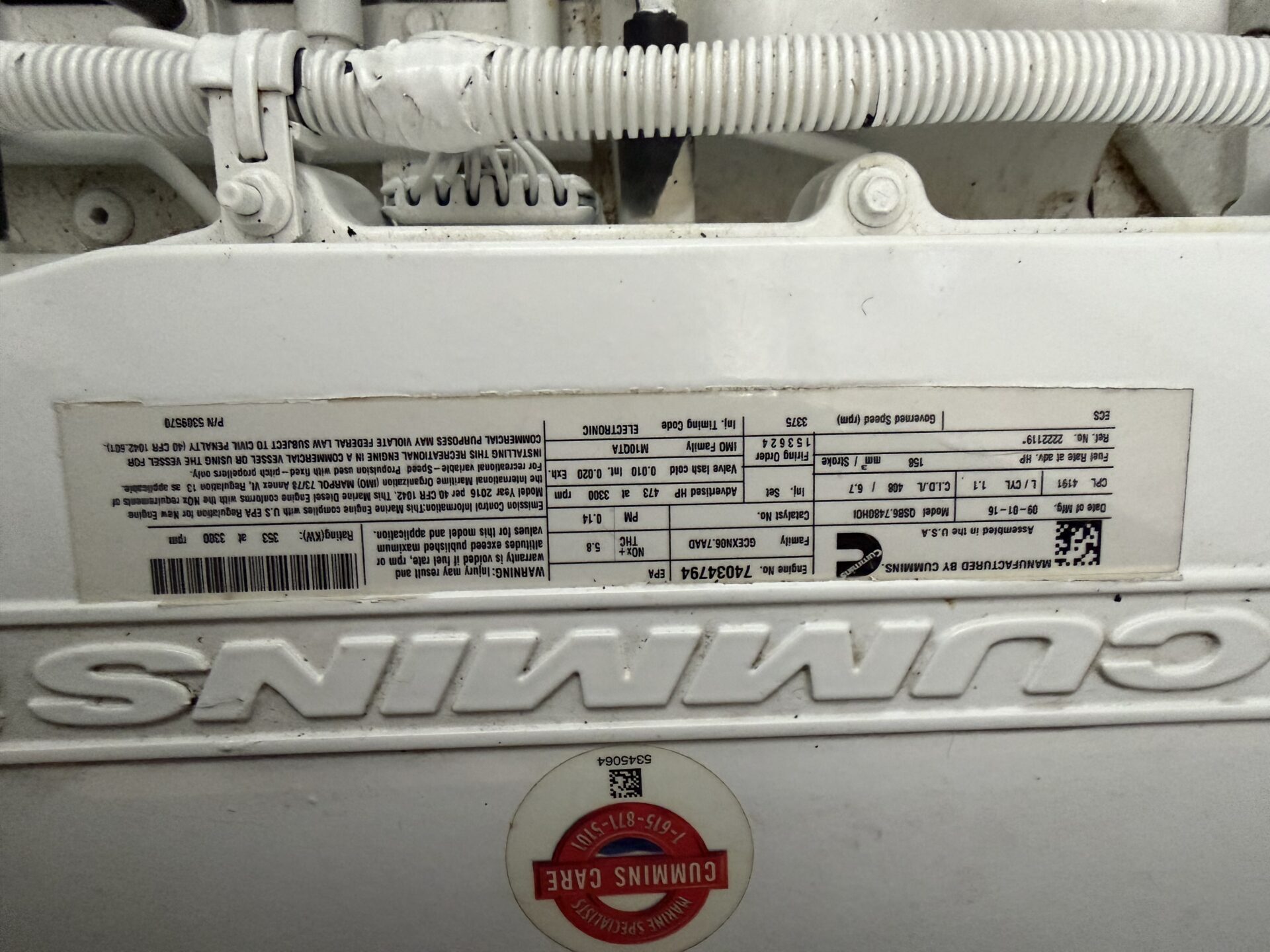 “Aquarius” only has 342 hrs on twin Cummins QSB 6.7L 480 T3 (459hp) and 743 on the Onan generator.