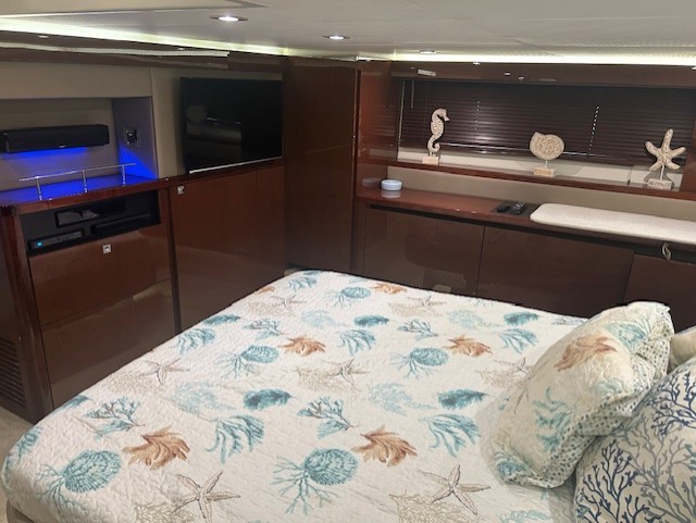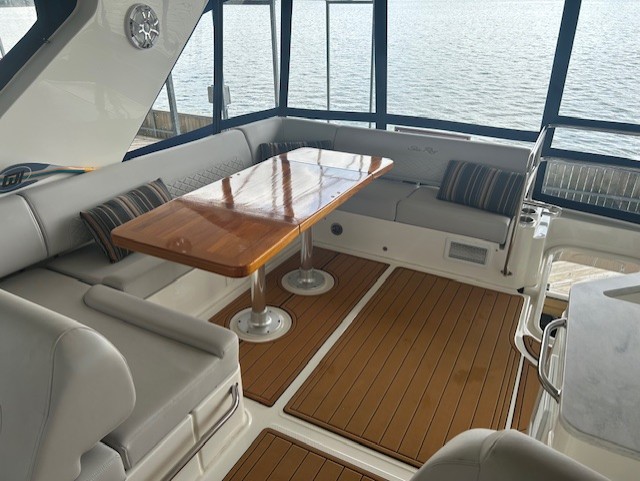This is a loaded Rare 460 FLY with the Large Hardtop with Canvas Enclosures, Air Conditioning & Heat and Generator Upgrade; It is loaded with Teak Flooring in Cockpit; Salon Door Screen; Opening Portlights in Staterooms; Salon Sofa with Pull Out Bed; Storage Cabinets in Master In Lieu of Stbd Seat; Safe; Wine Cooler; Washer/Dryer Combo Unit; Double Bed Matress Topper in VIP Stateroom; Forward Stateroom TV; DSS Satellite TV; Upgraded Inteiror Stereo System; Foredeck Sunshade; Foredeck Audio System; Hardtop with Opening Skylight; Opening Side Windows; Canvas Mesh Windshield Shades; Cockpit Eisenglas Enclosure; Exterior Stereo Upgrade for Cockpit & Bridge; Transom Gourmet Space with Electric Grill; Exterior Lighting Package; Hydraulic Swim Platform; Underwater Lighting; Radar; Autopilot; Chartplotter/GPS; Fishfinder; Joystick Piloting with Bow Thruster; Extended RAnge Fuel Tanks; Oil Change System; 2 Rod Holders;Teak Bridge Table w/Cover. Sitting in a Covered Slip on the TN River with easy water access to the Gulf of America or the Great Lakes.