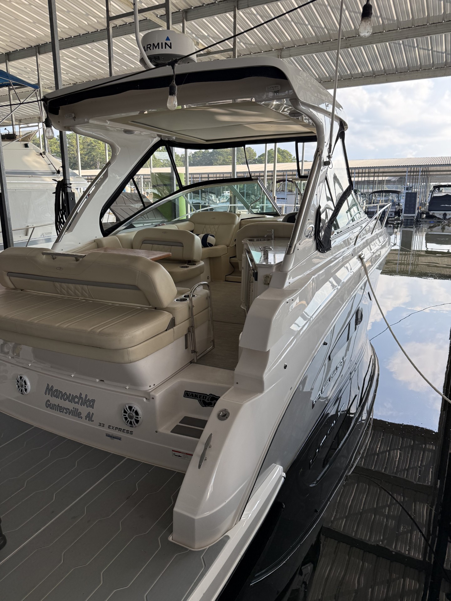 This is a loaded Freshwater Undercover 33 Express with only 268 hours on twin Volvo 300hp Duo Prop Drives. It is equipped with Hardtop with Isinglass Enclosures; Cockpit Grill; Cockpit Fridge; 7.5KW Westerbeke Generator; Heat & Air; Shore Power; Shore Water; Extended Swim Platform with Sea Dek; Forward Sunpad; Bluetooth Stereo; Garmin GPS; Radar; VHF Radio; Bow Thruster; Joy Stick Docking; Remote Spotlight; Windlass; Full Galley with Coffeemaker; Fridge; Microwave Oven; Electric Stove Cooktop; 2 Smart TV’s Full Head with Shower; Transom Shower; Quick Release Fender System; Last Surveyed September 2022.