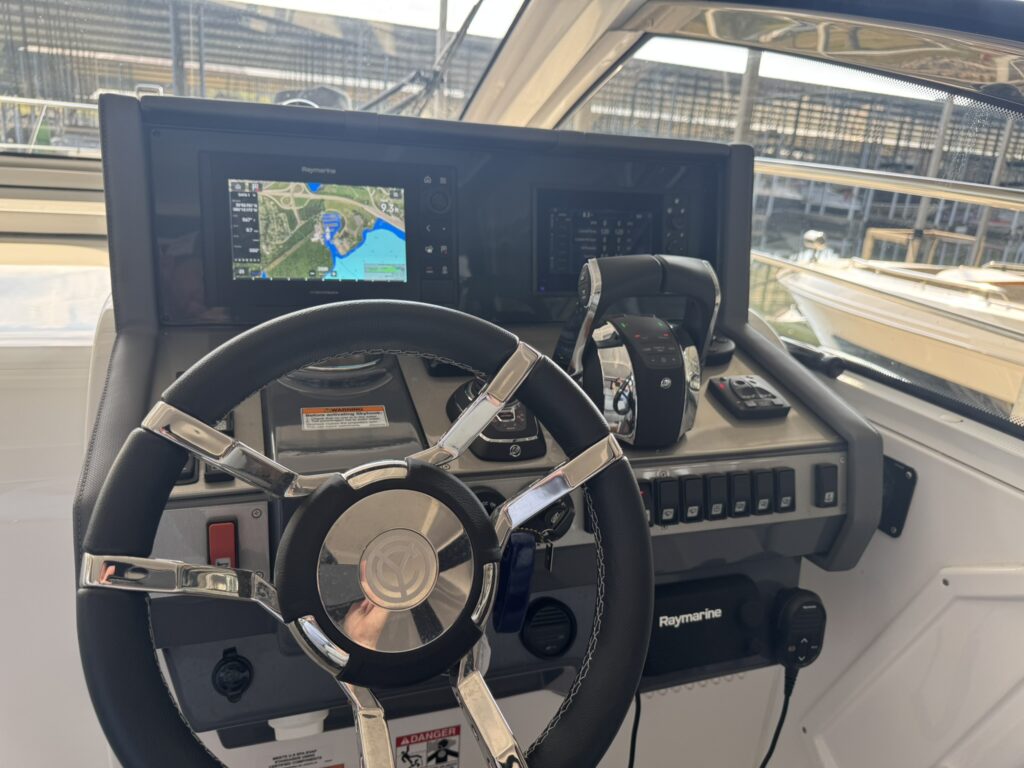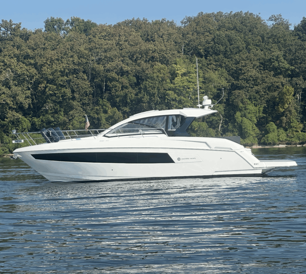 This is a Freshwater Only One Owner Undercover 390 Express Coupe with only 99 hours on Twin Mercruiser 8.2l HO MPI Bravo 3 Axius Drives. She is equipped with Hardtop with Fiberglass Sunroof; Helm Enclosures with Seat Covers; Dinette with Flip Up Bunks; Cockpit Seat with Power Backrests; Cockpit Table w/Filler Cushions; Aft Stateroom Bulkhead Door; Aft Stateroom & Salon TV’s Cockpit Heat & Air; Cockpit Electric Grill; Cockpit Fridge; Premium Stereo Package; Extended Swim Platform; Premium Electronics Package including Radar; Bottom Paint.