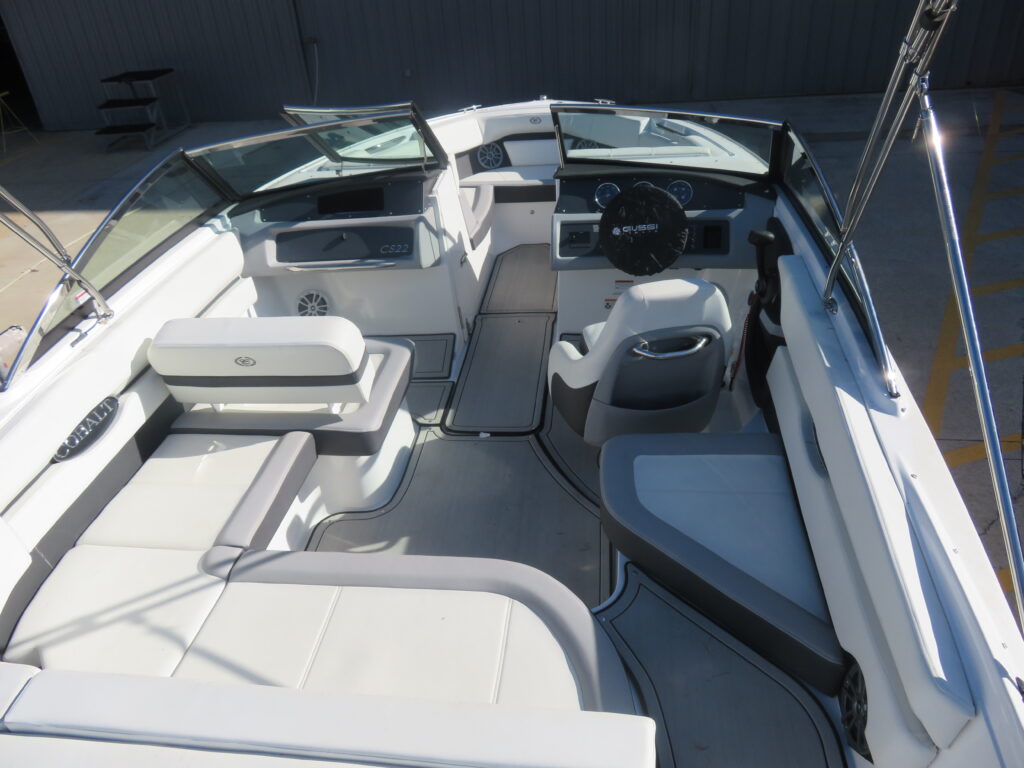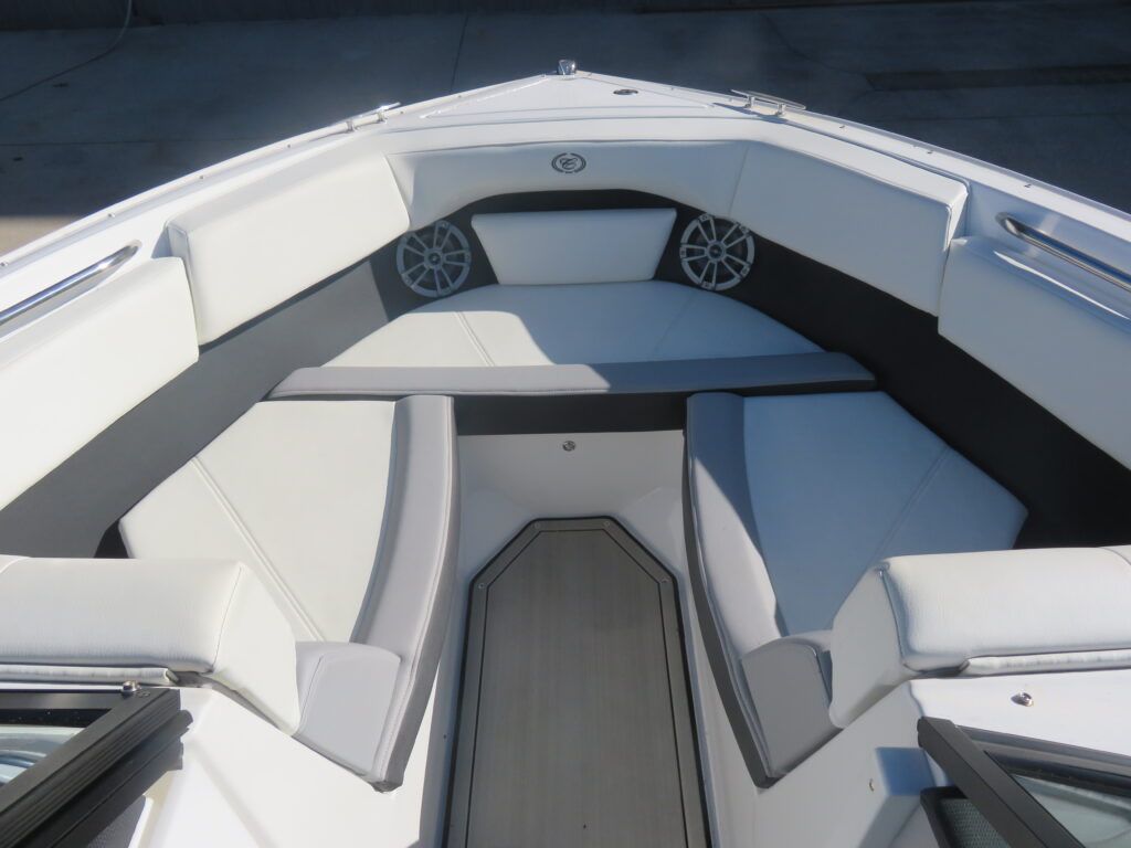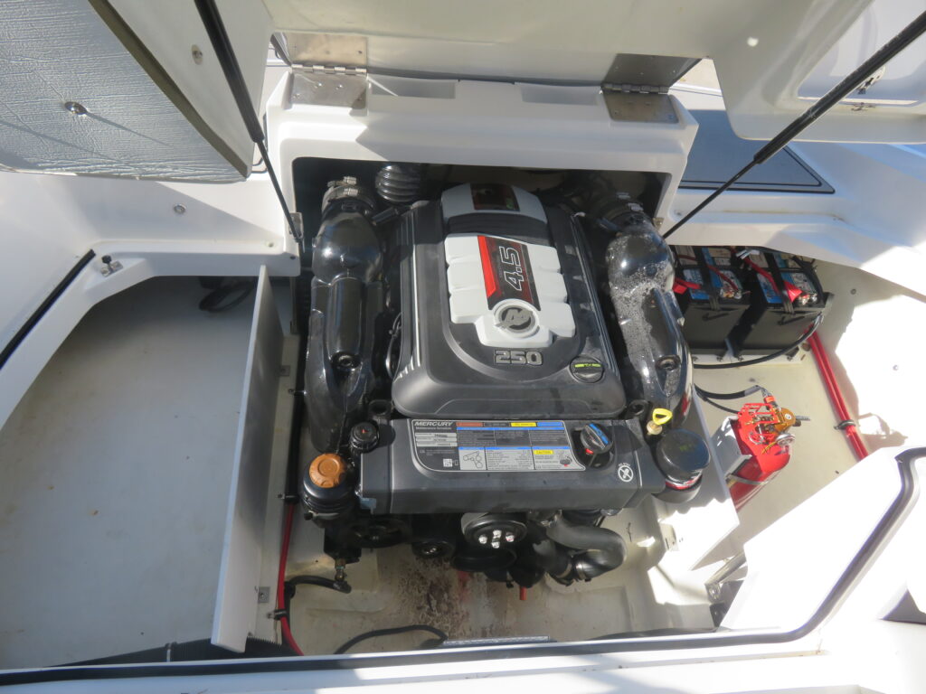 This is an AS NEW CS22 with only 5 hours on use on a Mercruiser 4.5l MPI Alpha (250php. It is equipped with Summit/Frost Interior; Snap In Soft Trac Mat in Cockpit & Bow; Flip Down Swim Step; Dual Battery Switch; Standard Fusion Sound System with Transom Remote; Bimini Top with Boot; Bow & Cockpit Covers; Swim Platform Transom Lighting; Transom Trim Switch; Bow Filler Cushion; Automatic Fire Suppression System; NO TRAILER!!