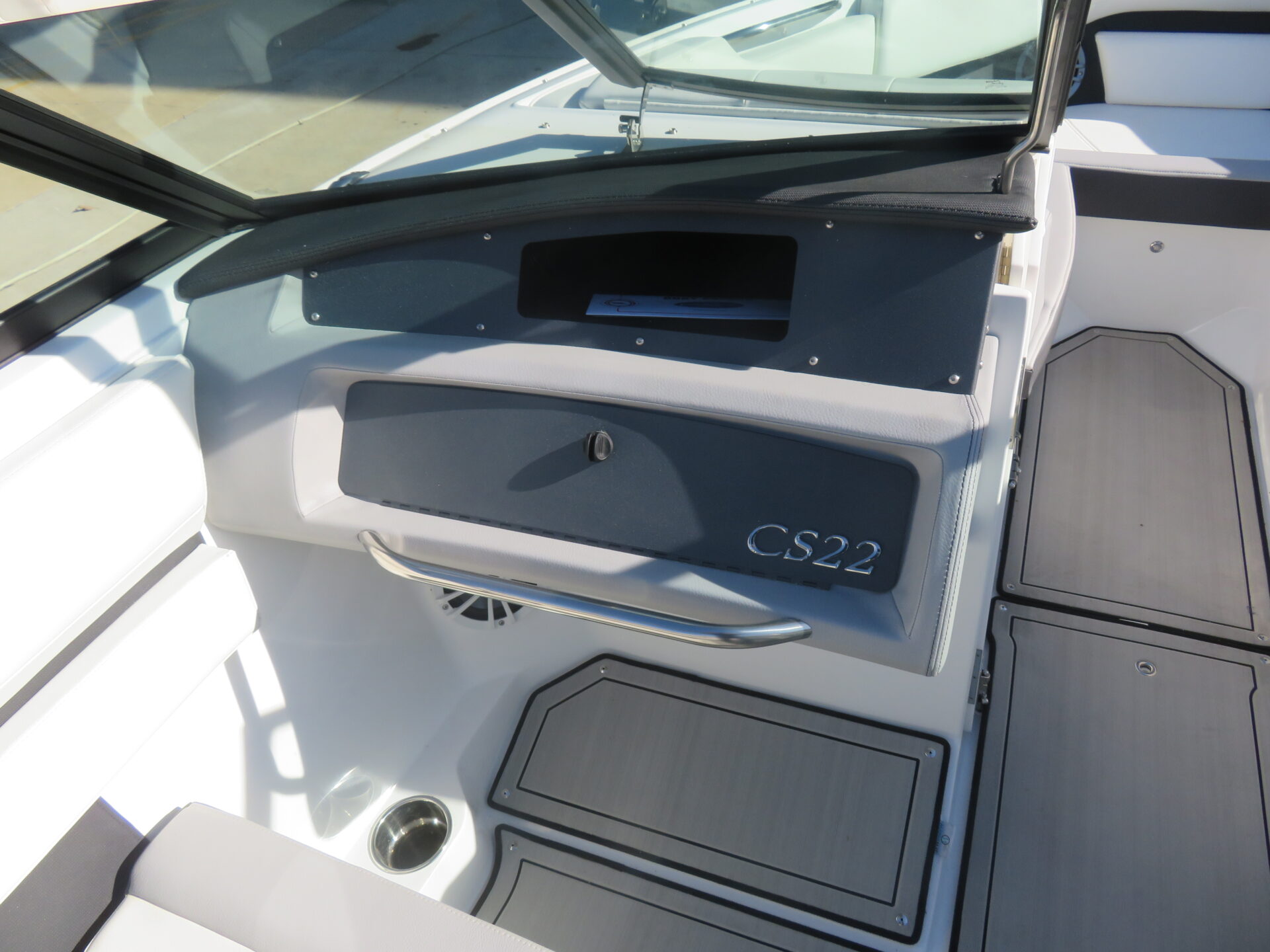 This is an AS NEW CS22 with only 5 hours on use on a Mercruiser 4.5l MPI Alpha (250php. It is equipped with Summit/Frost Interior; Snap In Soft Trac Mat in Cockpit & Bow; Flip Down Swim Step; Dual Battery Switch; Standard Fusion Sound System with Transom Remote; Bimini Top with Boot; Bow & Cockpit Covers; Swim Platform Transom Lighting; Transom Trim Switch; Bow Filler Cushion; Automatic Fire Suppression System; NO TRAILER!!