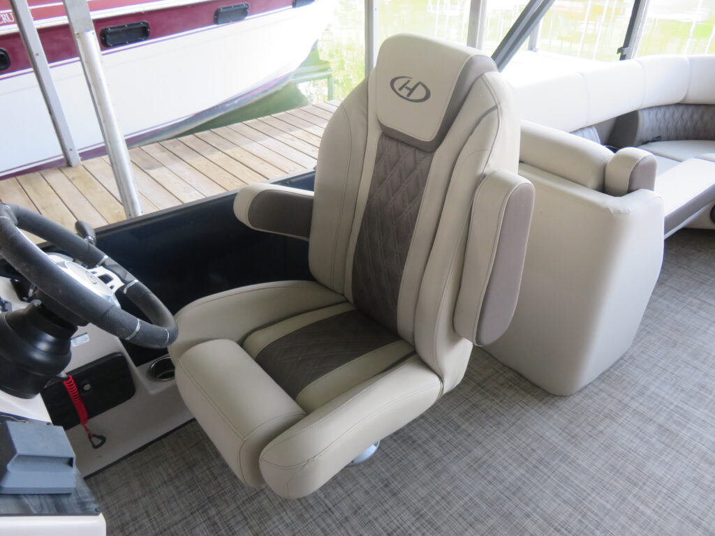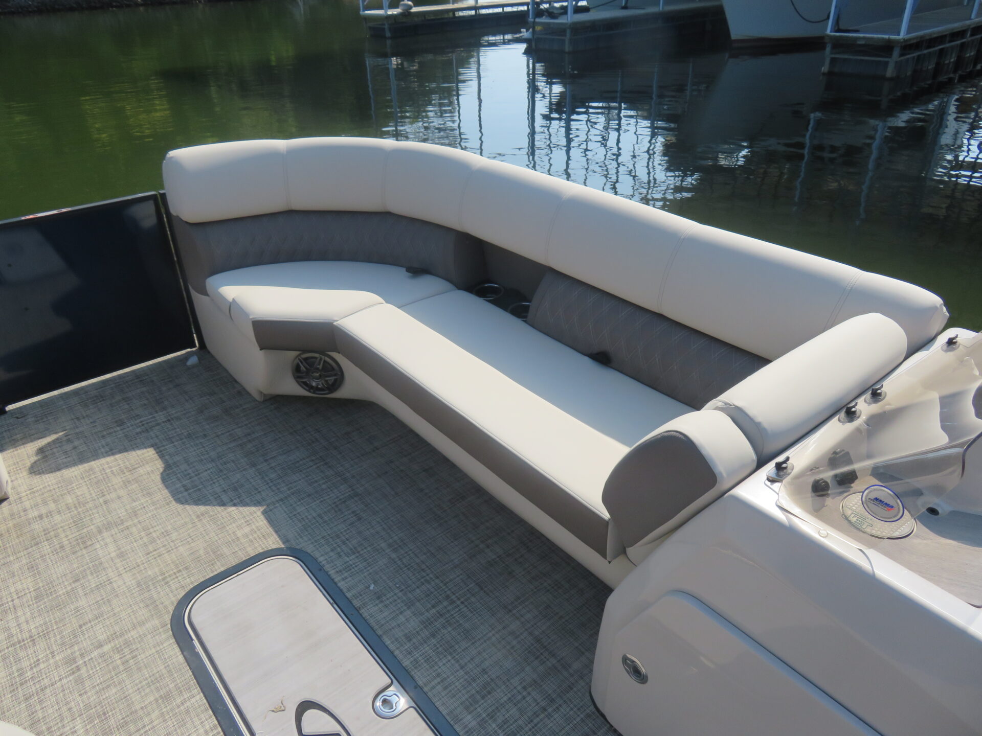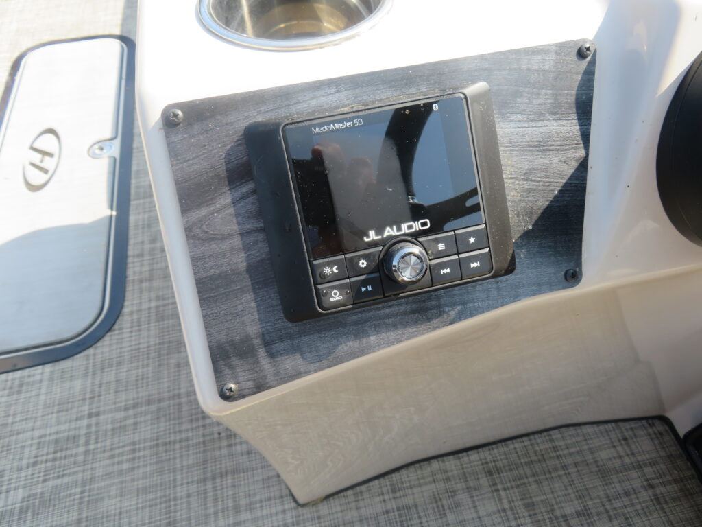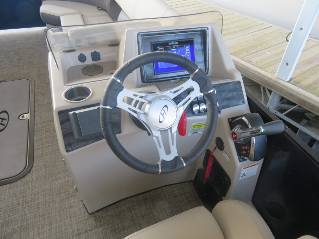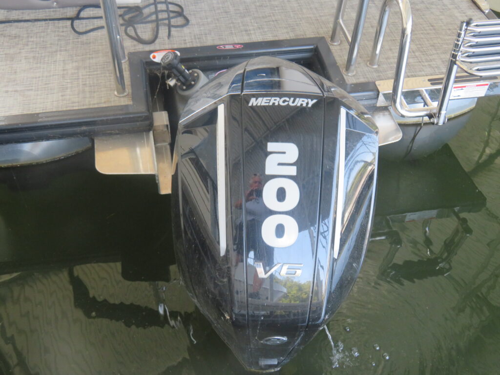 This is an AS NEW 250 Sunliner with only 16 hours on a Mercury 200 4 Stroke. It is a Triple 25″ Pontoon Chassis with Center Walkthru Floorplan; Ski tow Bar; In Floor Storage; 12′ Bimini Upgrade; Black Rail Package; Lighting Package; Wireless Phone Charger; Sea Grass Flooring; Simrad GO7 GPS/Plotter Data Screen; Stereo Upgrade; Chaise End Flip Up Table and Cockpit Table. NO TRAILER INCLUDED!!