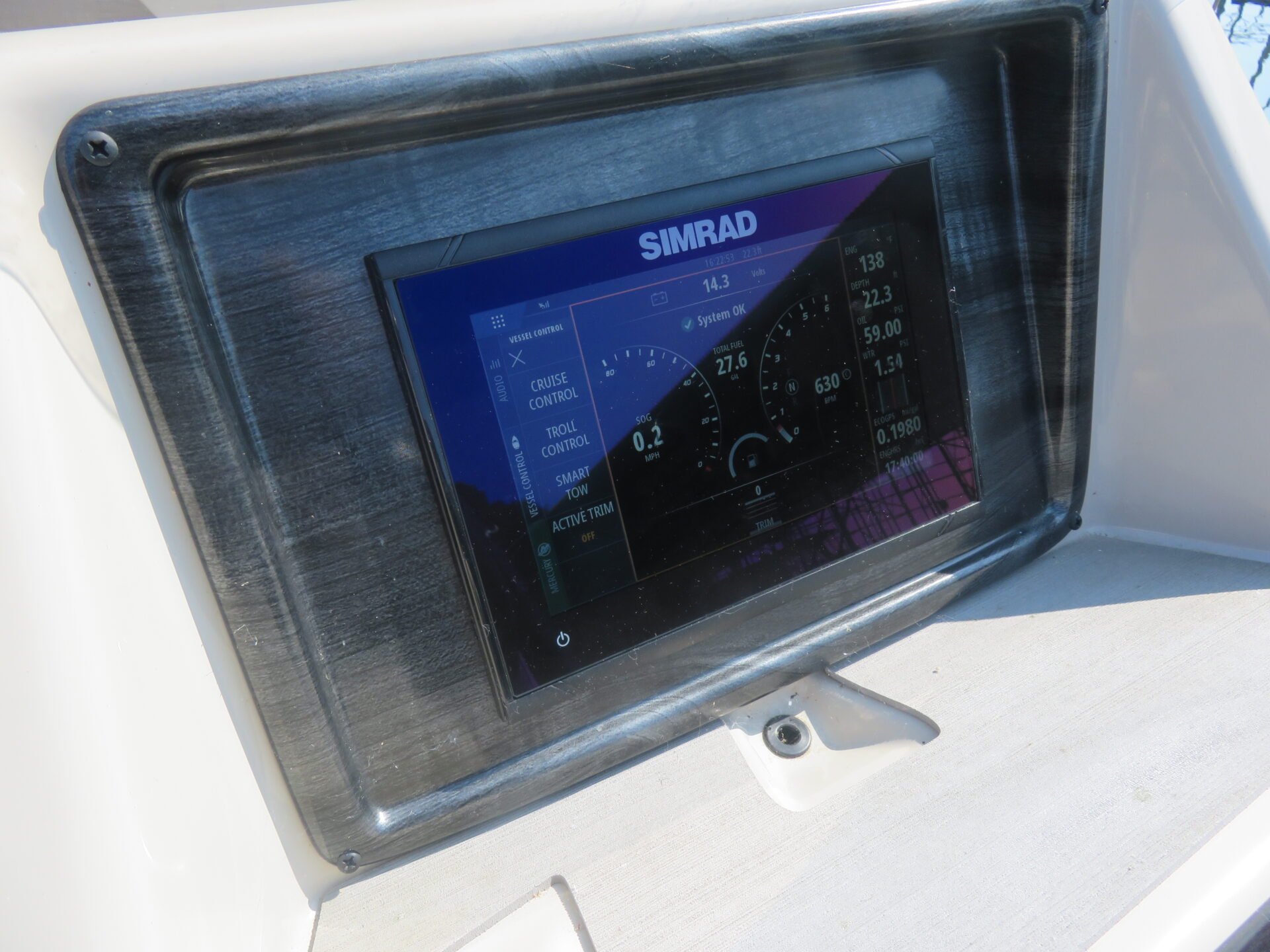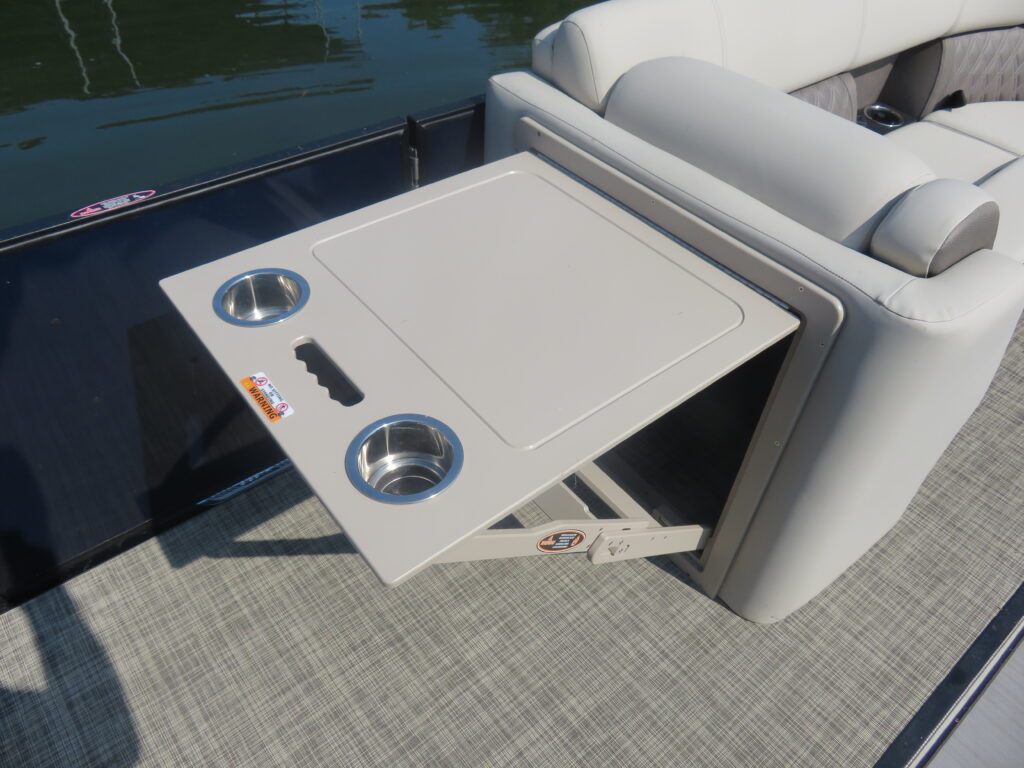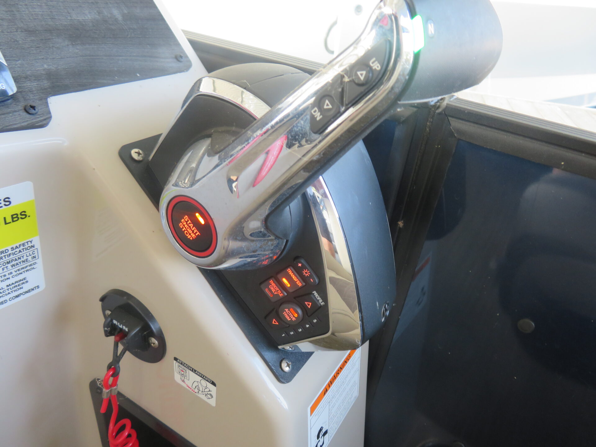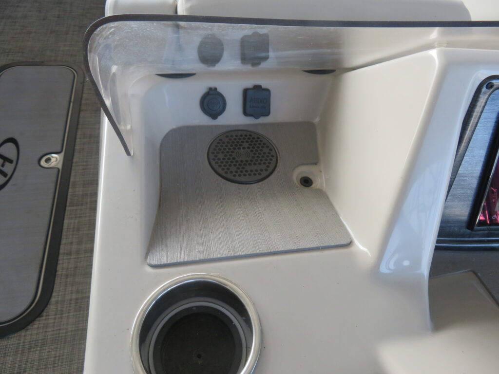 This is an AS NEW 250 Sunliner with only 16 hours on a Mercury 200 4 Stroke. It is a Triple 25″ Pontoon Chassis with Center Walkthru Floorplan; Ski tow Bar; In Floor Storage; 12′ Bimini Upgrade; Black Rail Package; Lighting Package; Wireless Phone Charger; Sea Grass Flooring; Simrad GO7 GPS/Plotter Data Screen; Stereo Upgrade; Chaise End Flip Up Table and Cockpit Table. NO TRAILER INCLUDED!!