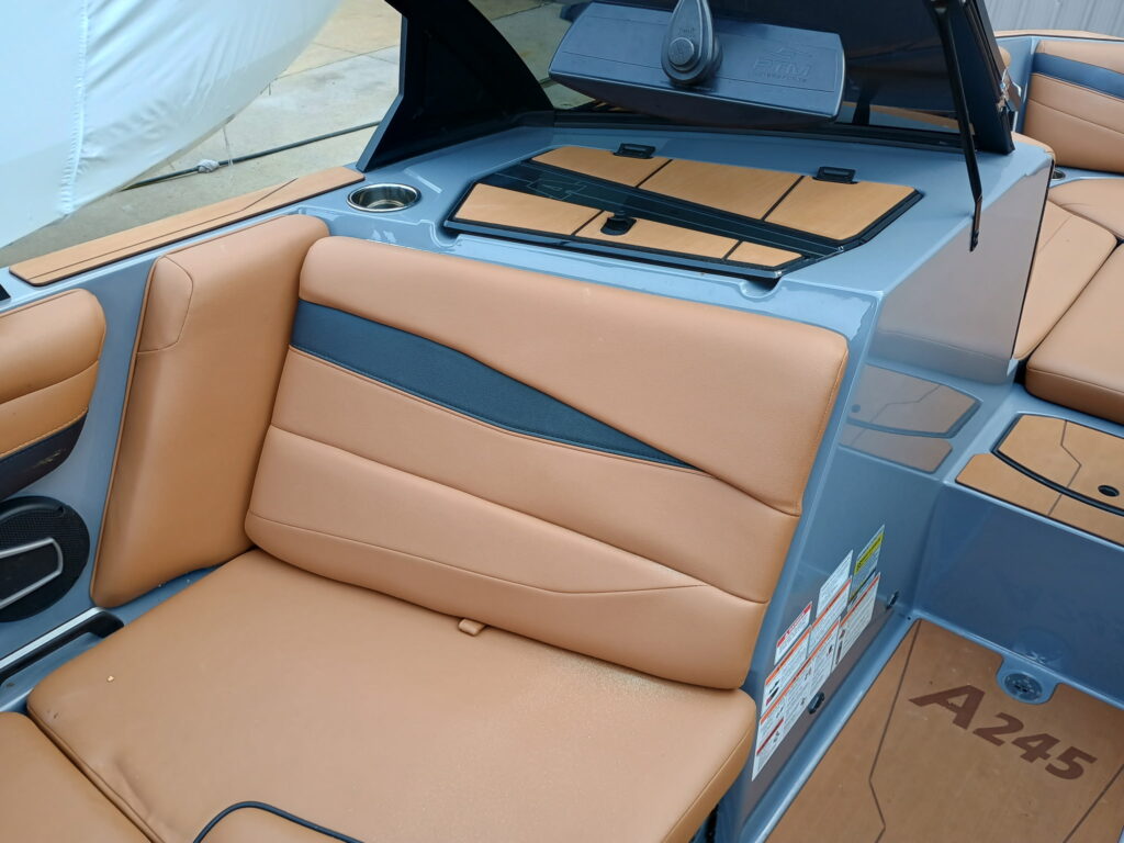 This is a loaded A245 with only 100 hours on a Monsoon M5DI V-Drive. It has always been Dry Stored in our building. It is equipped with Sport Dash with Wireless Charging; Deck Trac Soft Grip Flooring; Surf Pipe Exhaust; Ski Pylon; Battery Maintainer; Cool Touch Upholstery; Underseat Lighting; Underwater Lights; Docking Lights; Stereo Upgrade; Power Wedge 3; Surfband Wrist Control; Tandem Axle Custom Axis Trailer with Brakes.