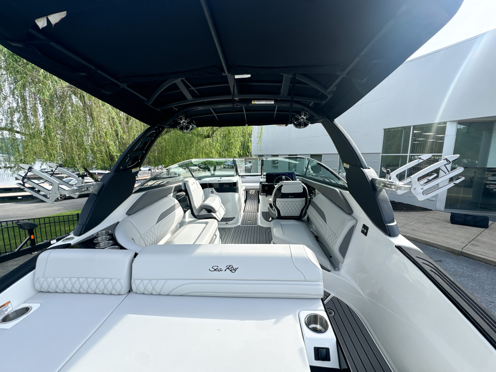 **NEW MODEL** – Neo Mint Green/Horizon/White Hull with Stone Interion and Gray Sea Dek Flooring; Powered by a Mercruiser 6.2l MPI Bravo 4 FWD Facing Drive (350php); Comfort Bundle (Bow Filler Cushion, Bow & Cockpit Tables); Enteretainment Bundle (Wireless Phone Charger, Fusion Apollo Audio System); Essential Bundle (Bow & Cockpit Covers, Sea Dek on Platform & Storage Compartment, US Flag & SS Mast, Fender Clips); Lighting Bundle (Bow & Cockpit RGB-W LED Lights, Cupholder Lights, Underwater Lights, Docking Lights, SR Badge & Logo Lights); Water System Bundle (Bow & Stern Washdowns); Power Tower with Bimini Top; Tower Speakers; Swivel Board Racks; Auto Fire Suppression System; Custom Boatmate Tandem Axle Trailer with Tandem Axle Brakes.