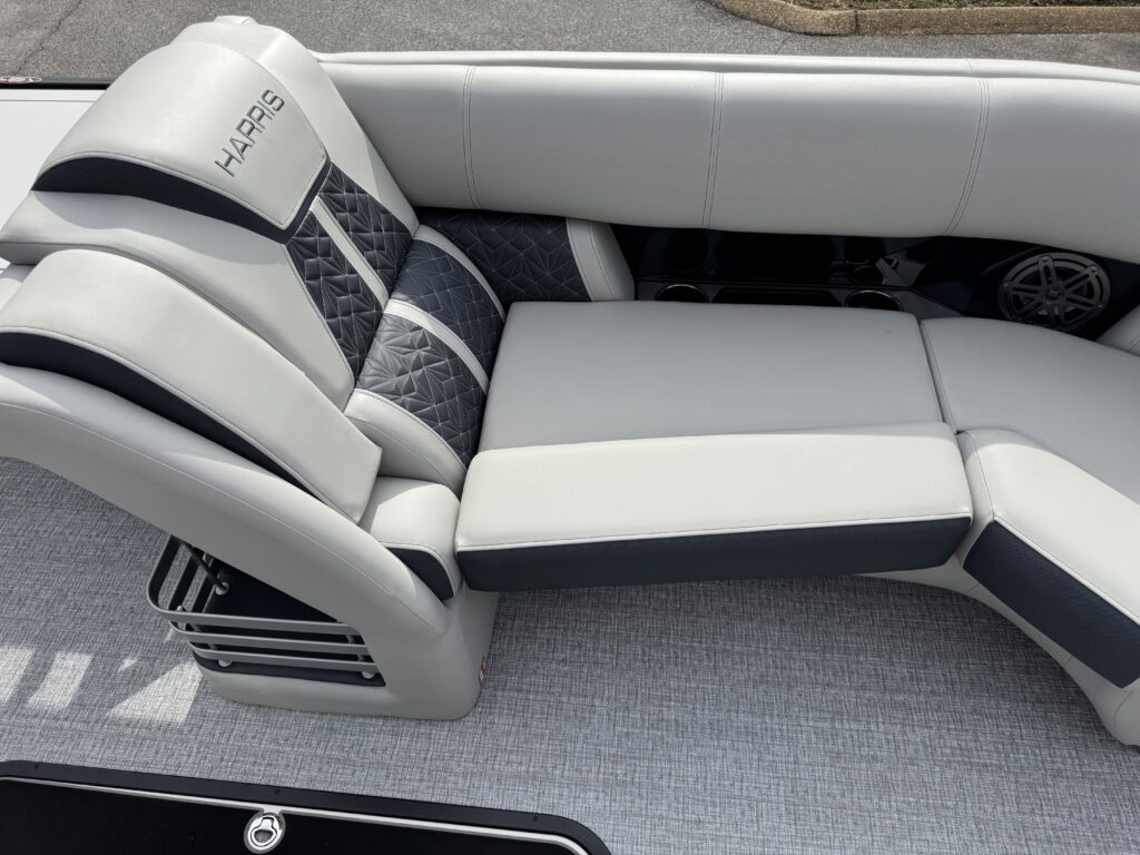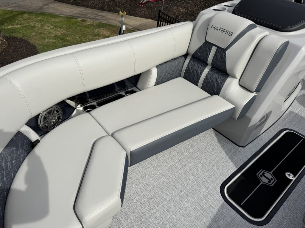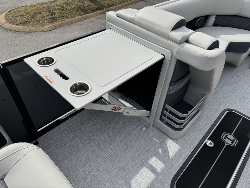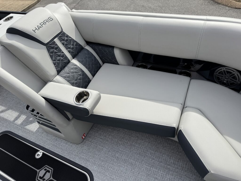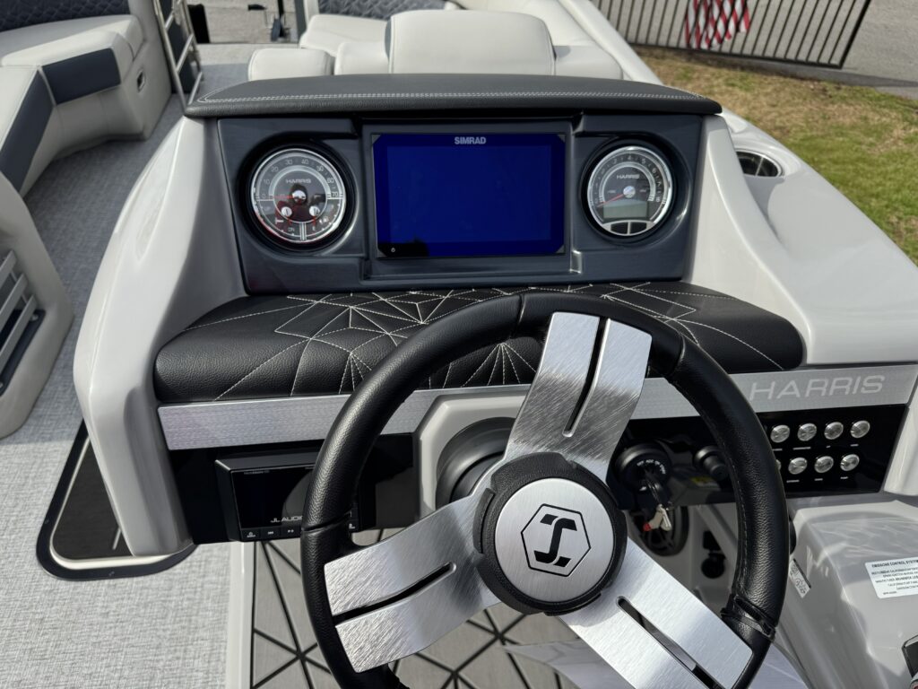 This is a Custom Grand Mariner 230 that is built on the 325RPM Chassis and Powered by a 300HP Mercury with Power Assisted Steering and DTS. It features the Center Walk Thru with Dual Helm Chairs and is Sterling Gray with Blush Red Accent and Black Rail Package. It is equipped with Contour Electric Bimini Top; Tungsten Pillowtop Furniture with Charcoal Accent; Salt Water Anodes; Deluxe Tech Package #1; Stone Gray Woven Vinyl Flooring; Simrad NSX9 Display; JL Sound System; 2 Additional Fenders; Aft SST Swim Step; Chaise End Flip Up Table.